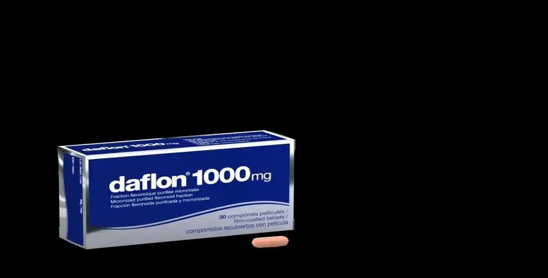 Daflon 1000: Micronized, purified flavonoid fraction 1000 mg: 900 mg diosmin; 100 mg flavonoids expressed as hesperidine. INDICATIONSTreatment of the symptoms of chronic venous disease of the lower limbs, either organic or functional: feeling of heavy legs, pain, night cramps. Treatment of acute hemorrhoidal episodes.DOSAGE AND ADMINISTRATIONIn venous disease: 1000mg daily.In acute hemorrhoidal attacks: the dosage can be increased up to 3000mg daily. CONTRAINDICATIONSHypersensitivity to the active substance or to any of the excipients. WARNINGS The administration of this product for the symptomatic treatment of acute hemorrhoids does not preclude treatment for other anal conditions. If symptoms do not subside promptly, a proctological examination should be performed and the treatment should be reviewed. Excipients: sodium-free.INTERACTION(S) FERTILITY PREGNANCY / LACTATION* Treatment should be avoided. DRIVE & USE MACHINES* UNDESIRABLE EFFECTS* Common: diarrhoea, dyspepsia, nausea, vomiting. Rare: dizziness, headache, malaise, rash, pruritus, urticaria. Uncommon: colitis. Frequency not known: abdominal pain, isolated face, lip, eyelid oedema. Exceptionally Quincke's oedema. OVERDOSE* PROPERTIES* Vascular protector and venotonic. [Tradename] acts on the return vascular system: it reduces venous distensibility and venous stasis; in the microcirculation, it normalizes capillary permeability and reinforces capillary resistance. PRESENTATION* LES LABORATOIRES SERVIER, 50 rue Carnot, 92284 Suresnes cedex France. www.servier.com * For complete information, please refer to the Summary of Product Characteristics for your country.